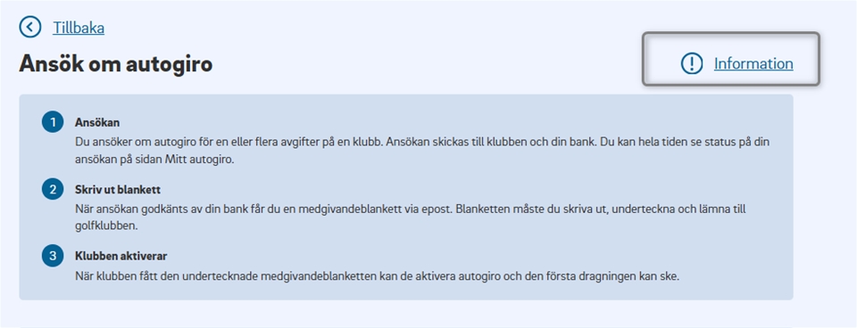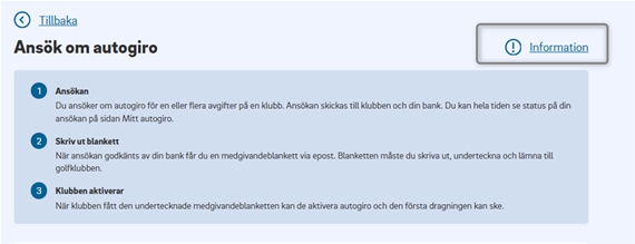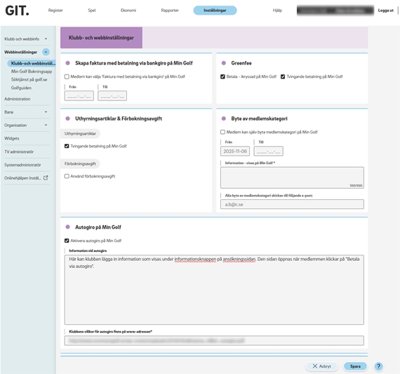 När du har tecknat avtal med SITRA så ska du aktivera rutan "aktivera autogiro på Min Golf" under Inställningar-Webbinställningar-Klubb-och webbinställningar.