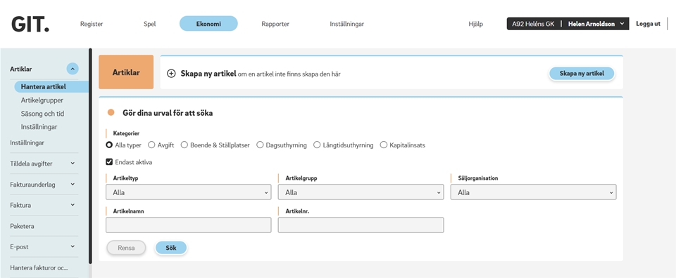 - Visa alla typer av artiklar och avgifter