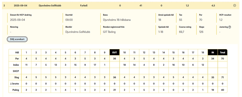 Det kan alltså skilja sig mellan poängen på scorekortet och den som används för handicapjustering.