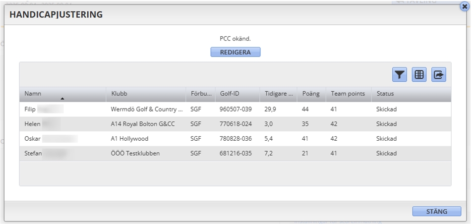 Det är klubbens (tävlingsledarens) ansvar att klicka på Justera handicap för dessa ronder.
