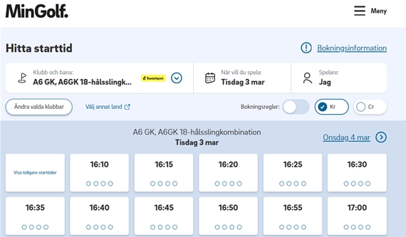 Logga in på Min Golf och gå till sidan för att boka starttid.
