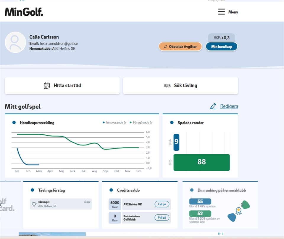✓Ladda ner eller visa sitt aktuella handicapbevis.