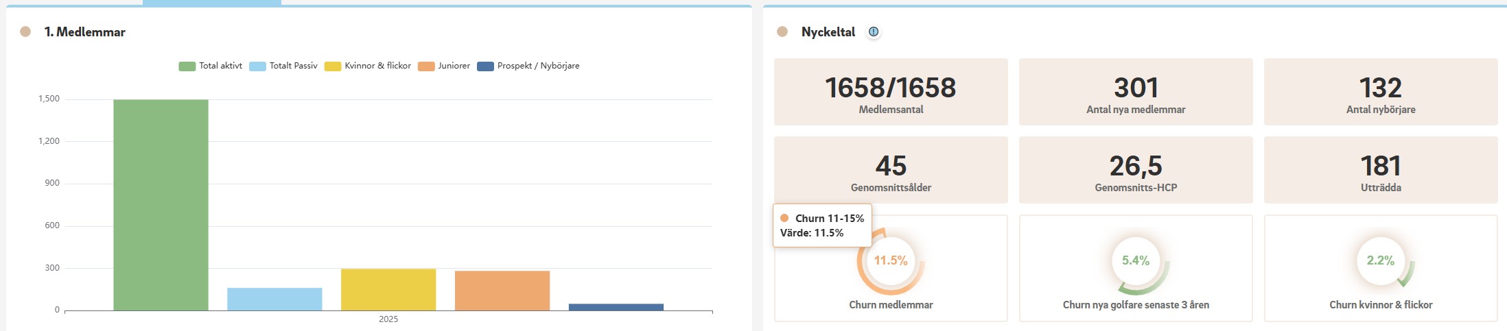 - Medlemsstatistik : Visar nyckeltal och detaljvyer av medlemsstatistiken