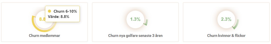 Visar antalet medlemmar som ligger i riskzonen för att lämna klubben eller golfen helt och hållit. Riskzonen är en best-practice-bedömning utifrån tidigare marknadsanalyser och dialoger med klubbar och pros.