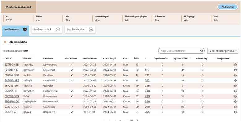 - Medlemsdata : Sökbara medlemsdata som också är det inlästa underlaget till alla statistikflikar