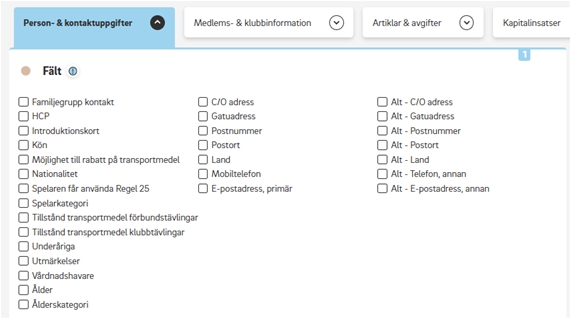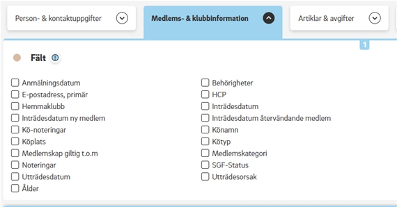 o Klubbens alla upplagda ålderskategorier samt SGF-kategorierna. Går ej att kombinera med åldersintervall.