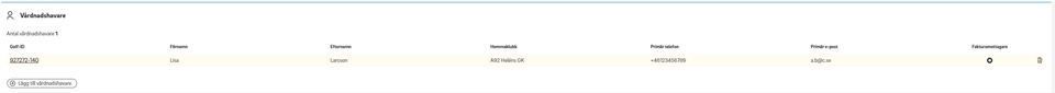 När du sökt fram eller skapat personen som ska läggas till som vårdnadshavare ser du dennes: