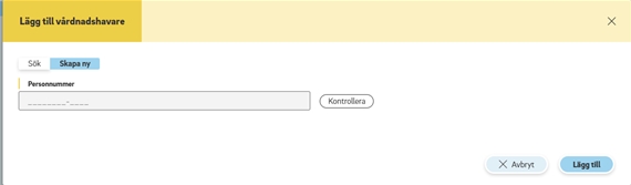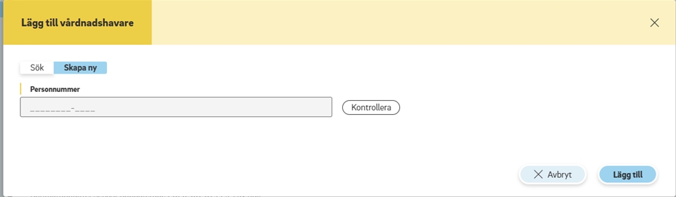 Du måste ha personnummer för både vårdnadshavaren och den underåriga för att skapa personen och lägga till vårdnadshavaren.