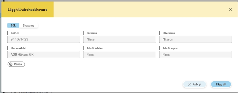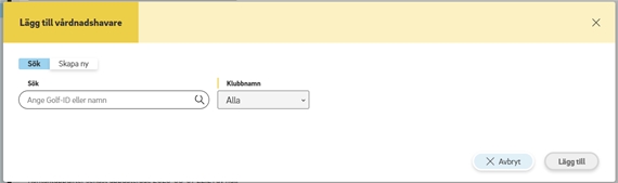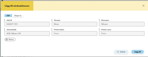 Om personen du ska lägga till som vårdnadshavare redan finns i GIT kan du antingen söka på Golf-ID eller på namn.