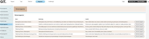 Det finns även en rapport som visar vilka bokningar som ett företag har gjort via GIT Partnerbokning den heter Bokningslista externa bokare med pris.