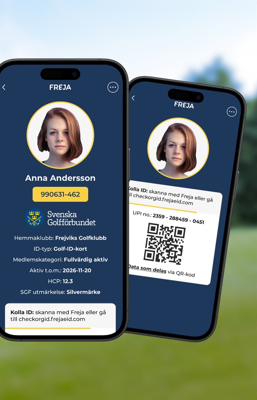 Du kan också scanna QR koden för spelare som har Golf-ID-kortet i Freja+ appen. Då kan du se direkt om en spelare är inbokad och även ankomstmarkera den spelaren.