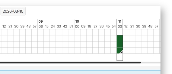 Det finns en svart linje (nu-markering) i starttidsschema, den visar vad klockan är just nu.