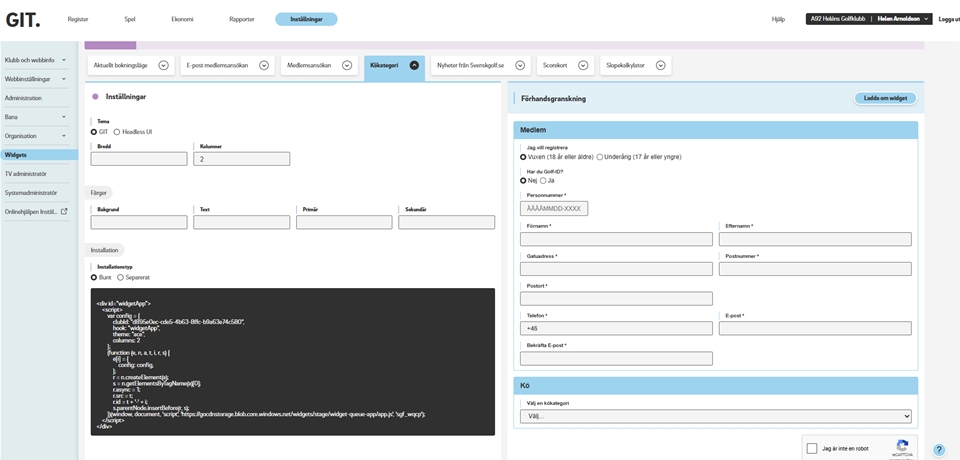 En GIT-widget är ett enkelt verktyg som automatiskt hämtar information från GIT och visar den på din klubbs hemsida.