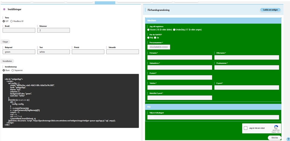 Bädda in widgeten på hemsidan