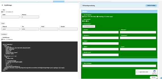 Förhandsgranskning: Till höger på sidan förhandsgranskar du widgeten, och kan även prova de olika alternativen för att se hur de ser ut för användaren.